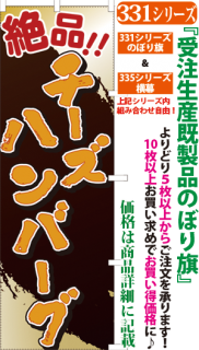 商品番号331...で始まる「受注生産のぼり旗」と335...で始まる「受注生産横幕」は背景以外をお客様好みにカスタムできます。
