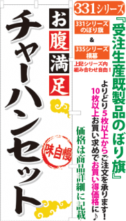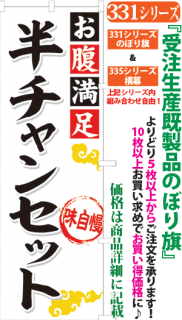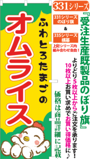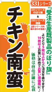 商品番号331...で始まる「受注生産のぼり旗」と335...で始まる「受注生産横幕」は背景以外をお客様好みにカスタムできます。