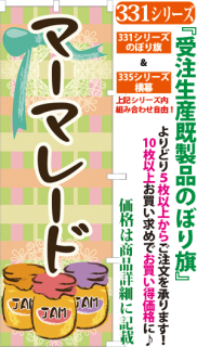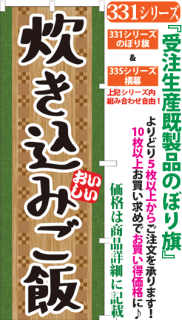 商品番号331...で始まる「受注生産のぼり旗」と335...で始まる「受注生産横幕」は背景以外をお客様好みにカスタムできます。