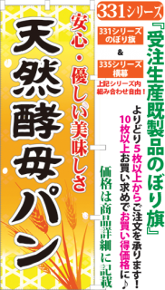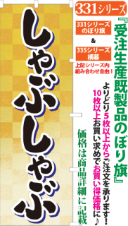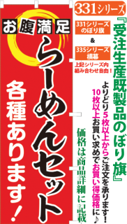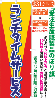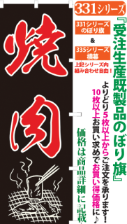 商品番号331...で始まる「受注生産のぼり旗」と335...で始まる「受注生産横幕」は背景以外をお客様好みにカスタムできます。