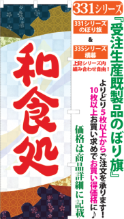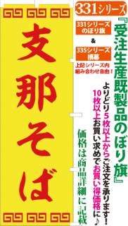 商品番号331...で始まる「受注生産のぼり旗」と335...で始まる「受注生産横幕」は背景以外をお客様好みにカスタムできます。