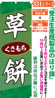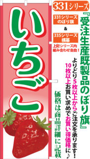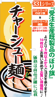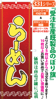 商品番号331...で始まる「受注生産のぼり旗」と335...で始まる「受注生産横幕」は背景以外をお客様好みにカスタムできます。
