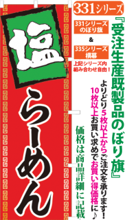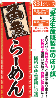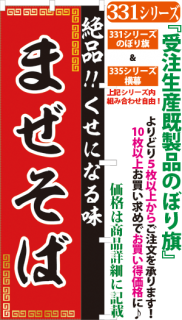 商品番号331...で始まる「受注生産のぼり旗」と335...で始まる「受注生産横幕」は背景以外をお客様好みにカスタムできます。