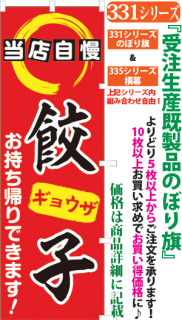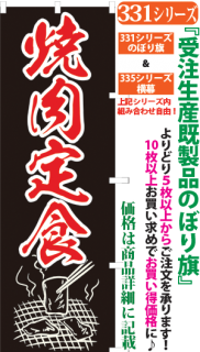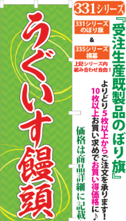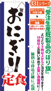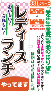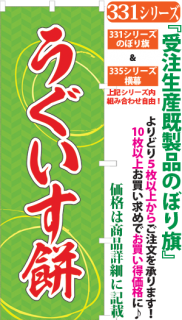 商品番号331...で始まる「受注生産のぼり旗」と335...で始まる「受注生産横幕」は背景以外をお客様好みにカスタムできます。