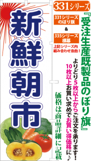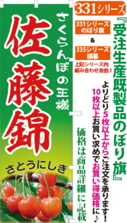 商品番号331...で始まる「受注生産のぼり旗」と335...で始まる「受注生産横幕」は背景以外をお客様好みにカスタムできます。