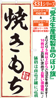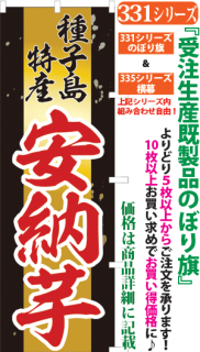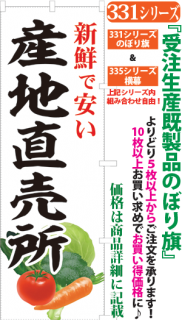 商品番号331...で始まる「受注生産のぼり旗」と335...で始まる「受注生産横幕」は背景以外をお客様好みにカスタムできます。