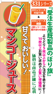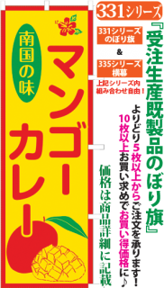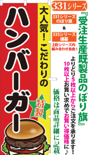 商品番号331...で始まる「受注生産のぼり旗」と335...で始まる「受注生産横幕」は背景以外をお客様好みにカスタムできます。