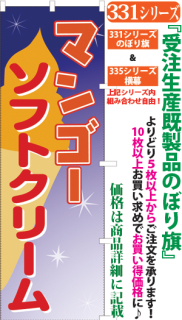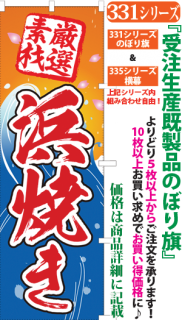 商品番号331...で始まる「受注生産のぼり旗」と335...で始まる「受注生産横幕」は背景以外をお客様好みにカスタムできます。