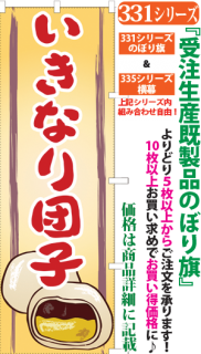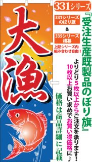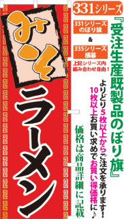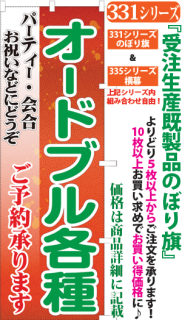 商品番号331...で始まる「受注生産のぼり旗」と335...で始まる「受注生産横幕」は背景以外をお客様好みにカスタムできます。