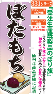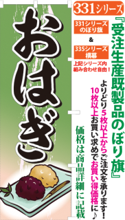 商品番号331...で始まる「受注生産のぼり旗」と335...で始まる「受注生産横幕」は背景以外をお客様好みにカスタムできます。
