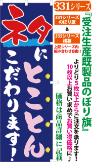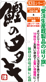 商品番号331...で始まる「受注生産のぼり旗」と335...で始まる「受注生産横幕」は背景以外をお客様好みにカスタムできます。