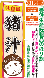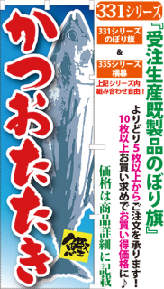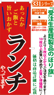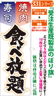 商品番号331...で始まる「受注生産のぼり旗」と335...で始まる「受注生産横幕」は背景以外をお客様好みにカスタムできます。
