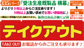 335000074 テイクアウト お電話・ネットからのご予約も承ります♪・横幕 検索キー:お持ち帰りできます 持帰り ていくあうと お弁当 お惣菜 のれん 暖簾