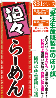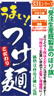商品番号331...で始まる「受注生産のぼり旗」と335...で始まる「受注生産横幕」は背景以外をお客様好みにカスタムできます。