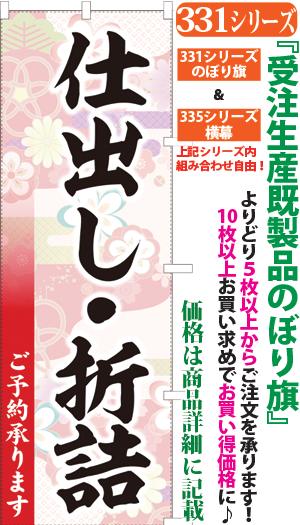 「受注生産既製品のぼり旗」は背景を使用してお客様好みにカスタムすることもできます。