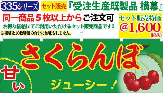 335000002-5 さくらんぼ・横幕 検索キー:サクランボ 桜桃 果物 くだもの フルーツ 観光農園 のれん 暖簾