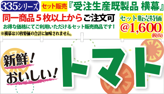 335000048-5 新鮮!おいしい!トマト・横幕 検索キー:とまと 野菜 やさい 農産物 農作物 直売所 販売所 のれん 暖簾