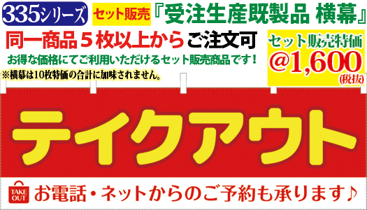 335000074-5 テイクアウト お電話・ネットからのご予約も承ります♪・横幕 検索キー:お持ち帰りできます 持帰り ていくあうと お弁当 お惣菜 のれん 暖簾