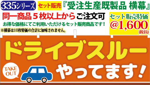 335000076-5 ドライブスルーやってます!・横幕 検索キー:テイクアウト お持ち帰りできます 持帰り お弁当 お惣菜 のれん 暖簾